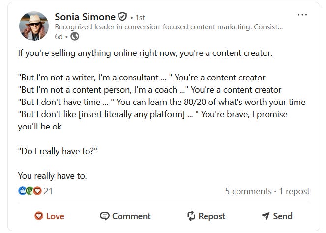 Next up, Sonia Simone on LinkedIn: